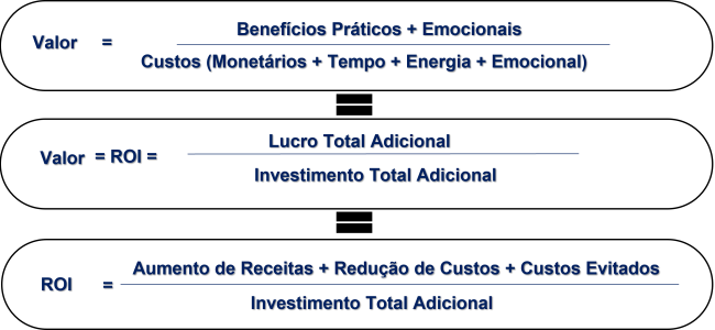 Calcular o ROI é mais fácil do que muitos imaginam. Quando mudamos a nossa postura e separamos o processo do produto e procuramos compreender o processo do cliente e suas necessidaes, damos oportunidade a nós mesmos e ao potencial comprador “ver” o ROI = Valor = Benefícios da solução/Custo da solução. Observe a fórmula ……