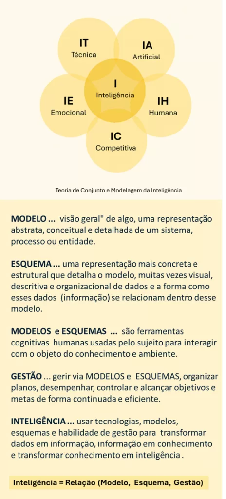 Podemos relacionar, equacionar e formular conceitualmente a inteligência como uma relação entre modelo, esquema e gestão.