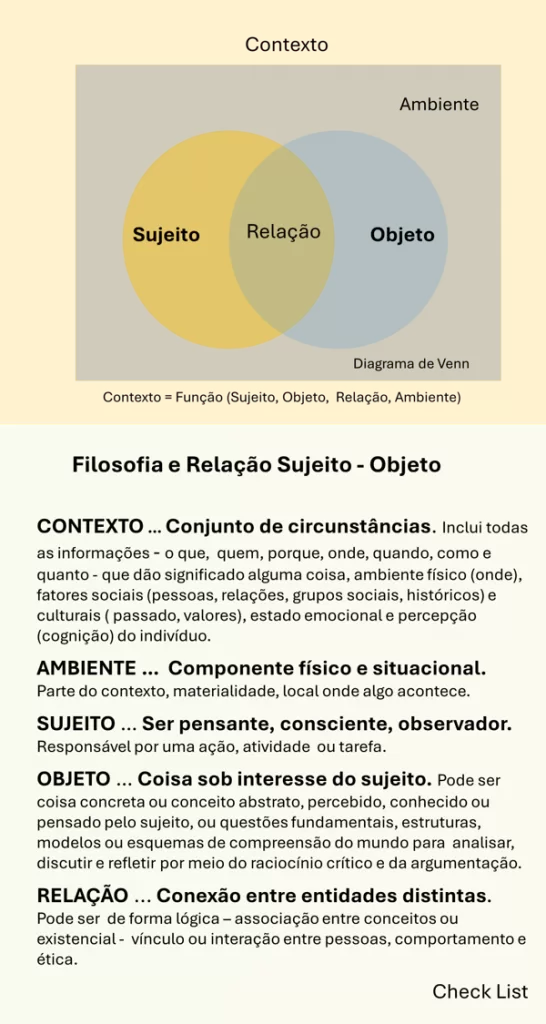 OBJETO … Coisa sob interesse do sujeito. Pode ser coisa concreta ou conceito abstrato, percebido, conhecido ou pensado pelo sujeito, ou questões fundamentais, estruturas, modelos ou esquemas de compreensão do mundo para analisar, discutir e refletir por meio do raciocínio crítico e da argumentação.