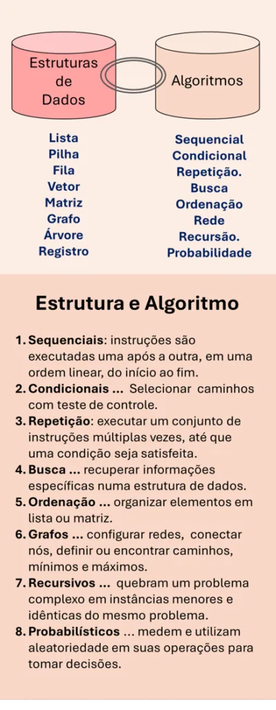 - A estrutura de dados é a forma como os dados são organizados e armazenados para que esses passos possam ser executados eficientemente.