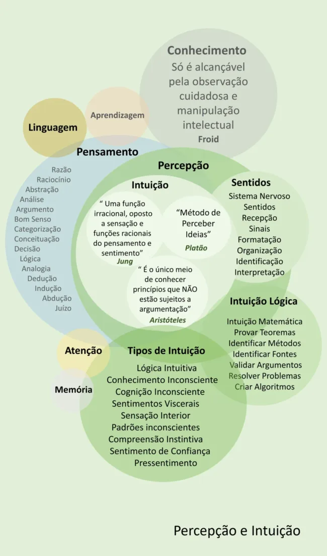 Intuição é a habilidade cognitiva para adquirir conhecimento via “acesso direto ao inconsciente”, sem uso do raciocínio consciente … é um tipo de percepção. O estado difuso é o estado relaxado, quase inconsciente e consciente, que podemos acessar quando planejamos, refletimos, quando dormimos, acordamos, andamos, fazemos exercícios e de uma forma geral estamos com “atenção livre” Podemos alcançar…