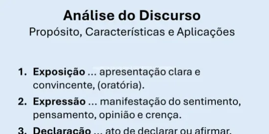 - Discurso (A Ação): É a linguagem em uso, um processo contínuo que produz sentido. O discurso é formado por um conjunto de enunciados ligados entre si em um contexto específico.