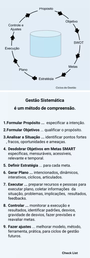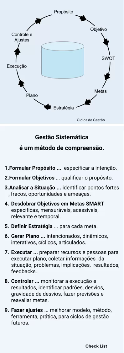 Essa forma simples de pensar a gestão permite sistematizar qualquer projeto, atividade ou tarefa, como comprar, vender, desenvolver conteúdo, fazer contatos, investigar.
