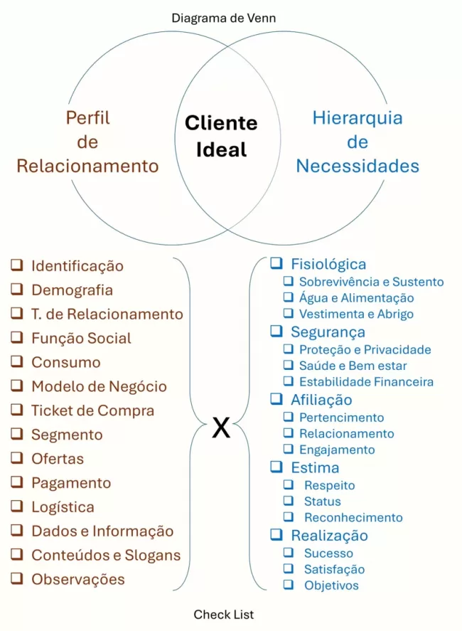 A figura ilustra um esquema para conceituar, modelar e configurar a “ferramenta cliente ideal”. Funciona como um metamodelo com dois conjuntos ou categoriaas de informações: 1) perfil de clientes e 2) hierarquia de necessidades. Permite gerar modelo simples de referência que pode ser gradativamente refinado, ao longo da gestão de campanhas de marketing, para orientar…